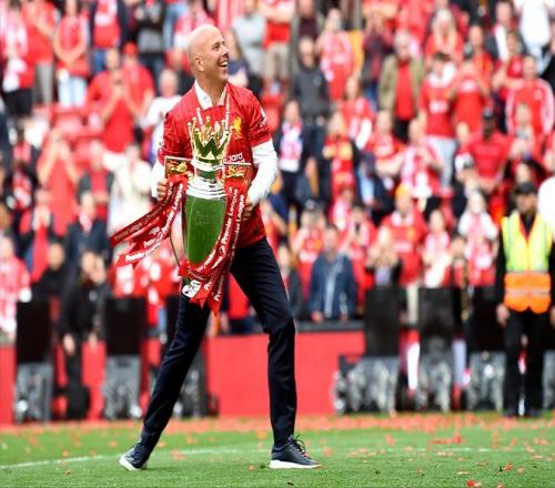 斯洛特在自己的英超菜鳥賽季就率隊奪冠,比肩穆里尼奧、孔蒂等名帥,一下聲名鵲起。但是,在絕大多數媒體和球迷看來,這座英超冠軍獎杯至少有一半的功勞該記在前任克洛普頭上——球員,戰術全是克洛普打造的,斯洛特不過是享受了“前人栽樹”的福利。