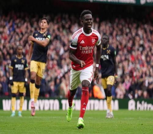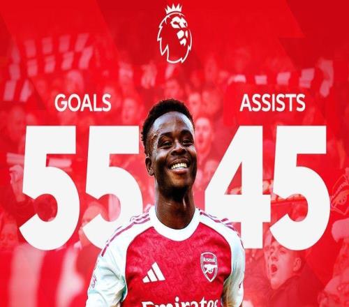 英超第7輪主場迎戰西漢姆聯的比賽中,薩卡的點球破門幫助阿森納取得2-0的領先。這個進球也讓薩卡迎來了屬于自己的里程碑時刻:自從職業生涯出道至今,他已經在英超聯賽當中貢獻了